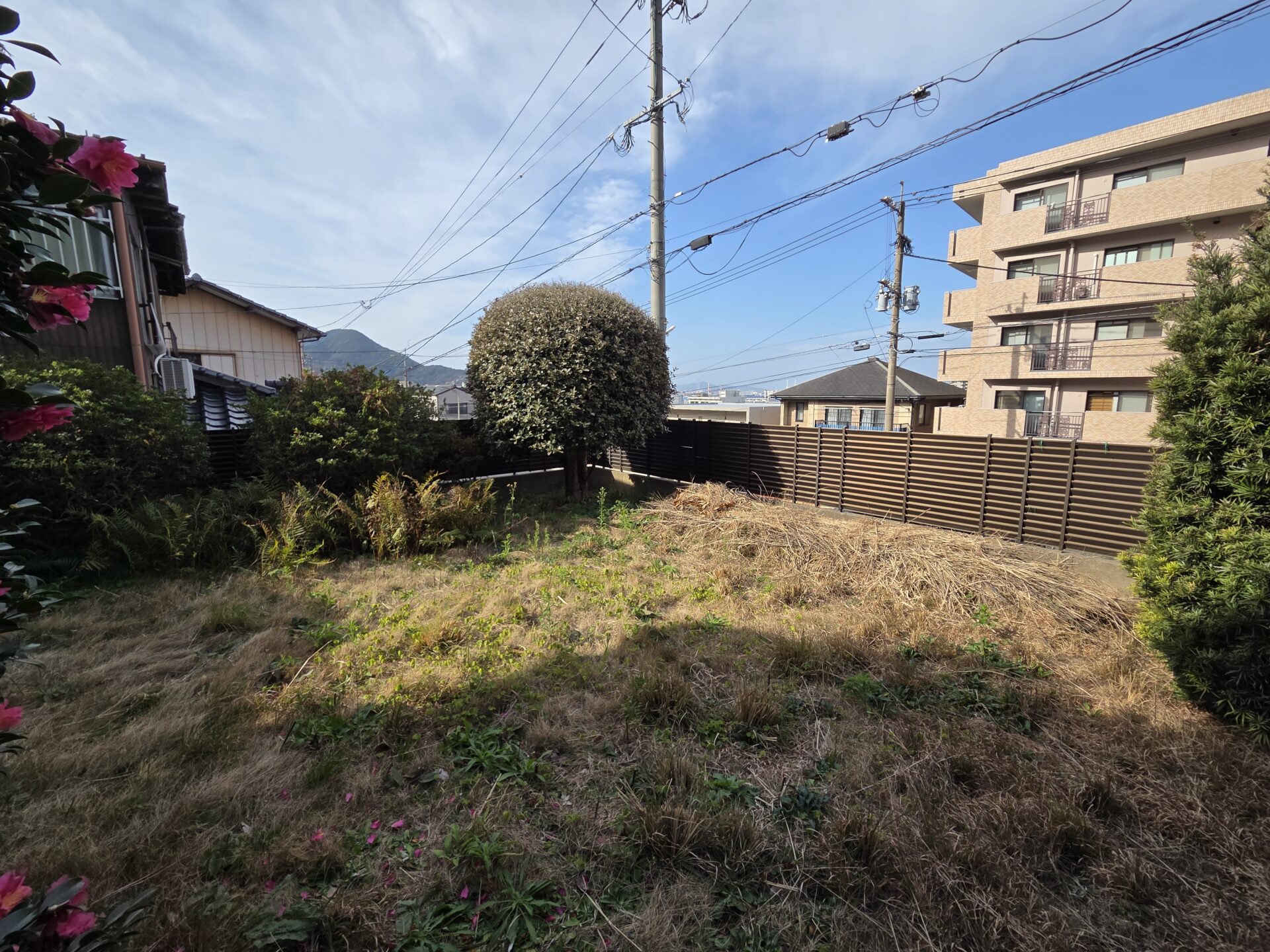 408㎡を超えるゆとりある敷地。庭にウッドデッキをつくるのもいい。子どもが走り回る芝生を敷くのもいい。家庭菜園で四季を楽しむのもいいでしょう。
