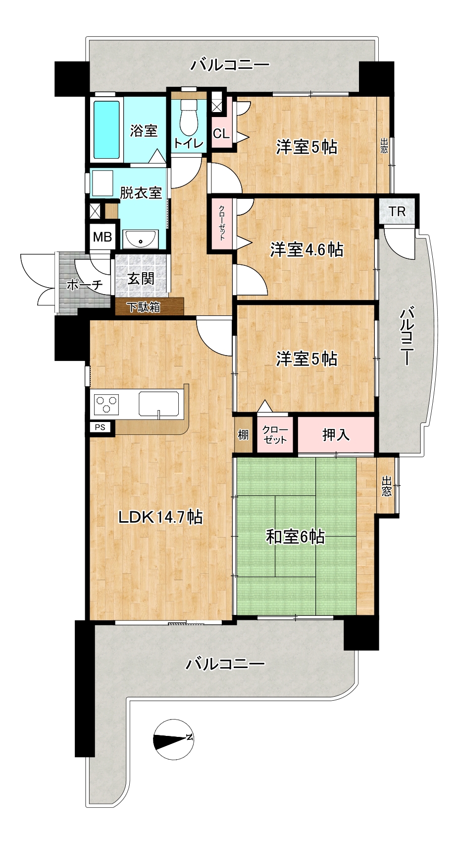 ■ 80㎡超4LDK&26㎡大型バルコニーで家族でも余裕の広さ